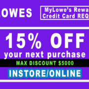 ** MyLowe’s Reward Credit CARD REQUIRED** Save 15% off your next purchase at lowes.com or IN STORE using MyLowe’s Reward Credit CARD as payment. MAX Saving $5000